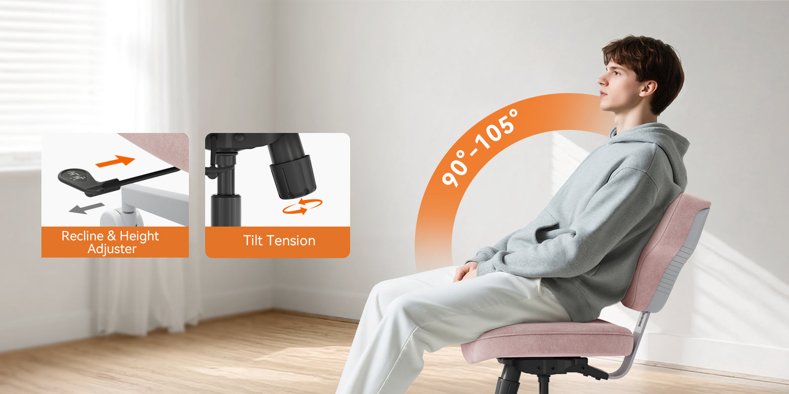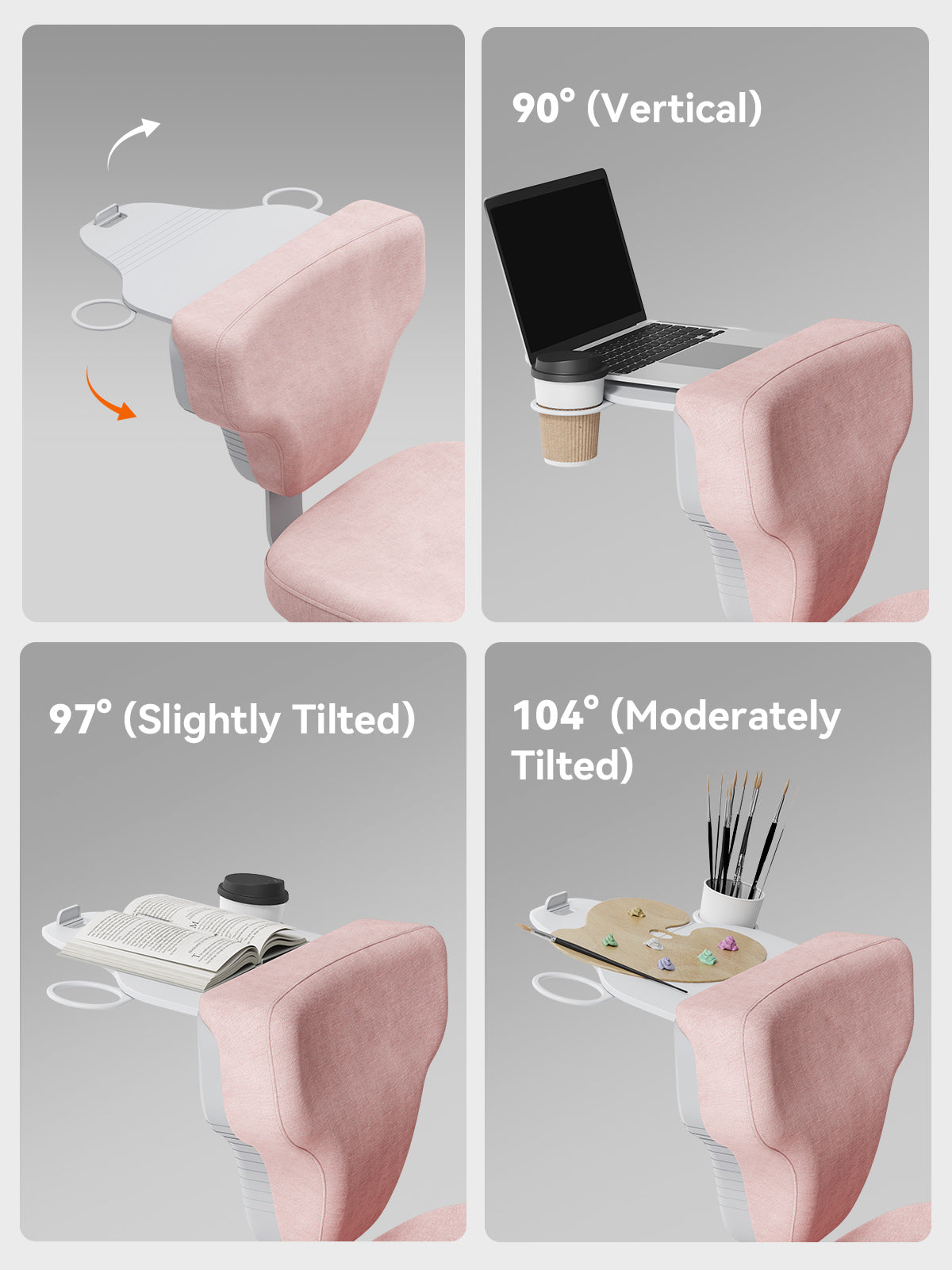 The built-in laptop tray offers 90°, 97°, and 104° adjustments to perfectly support work, reading, and viewing. With a 66lbs load capacity, anti-slip slot, and hidden cup holders, it securely organizes your devices and essentials for uninterrupted focus.