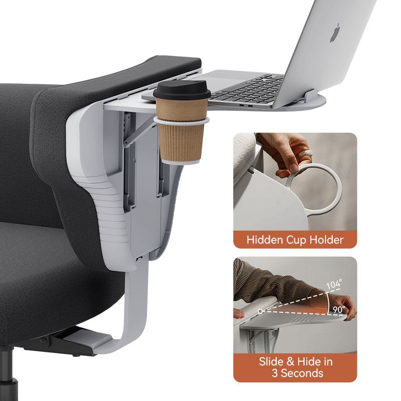 Office or Relax, Seamlessly: Switch between focus and relaxation with an adjustable armrest, retractable laptop tray, and hidden cup holder.