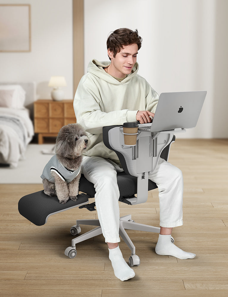 Additionally, when the armrests are lowered, you can enjoy some fun interactions: you can have your pet or child sit on the armrests to work or play with you, creating a warm and enjoyable interactive experience!