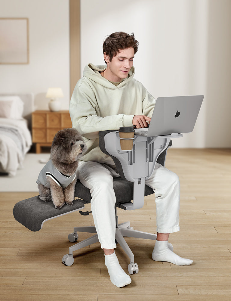 Additionally, when the armrests are lowered, you can enjoy some fun interactions: you can have your pet or child sit on the armrests to work or play with you, creating a warm and enjoyable interactive experience!