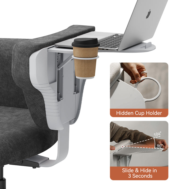 Office or Relax, Seamlessly: Switch between focus and relaxation with an adjustable armrest, retractable laptop tray, and hidden cup holder.