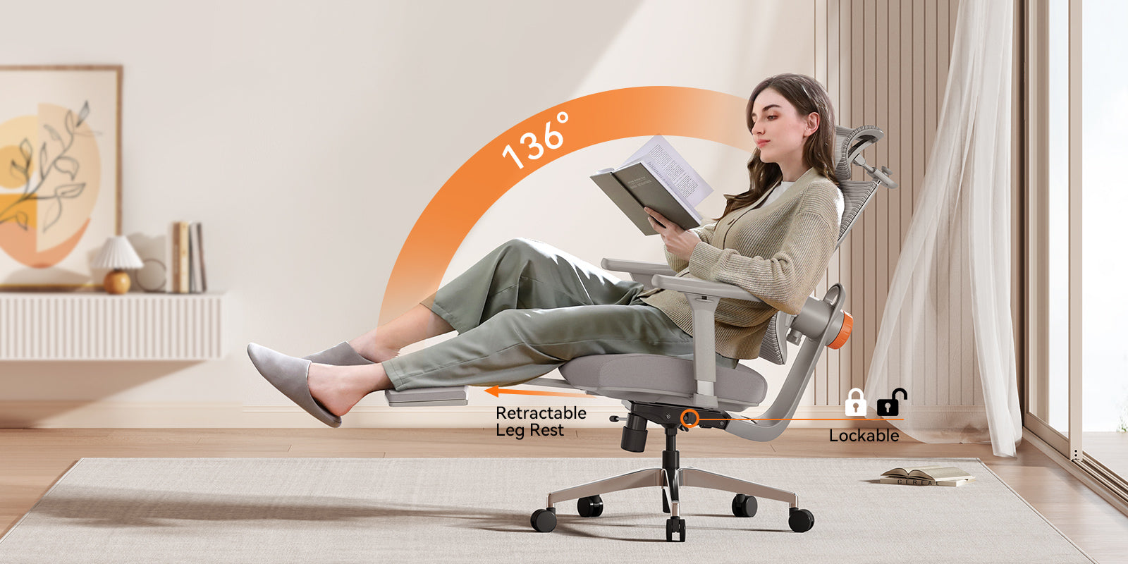 The auto-following backrest design effectively supports your back whether you lean forward or recline, relieving spinal pressure from prolonged sitting.