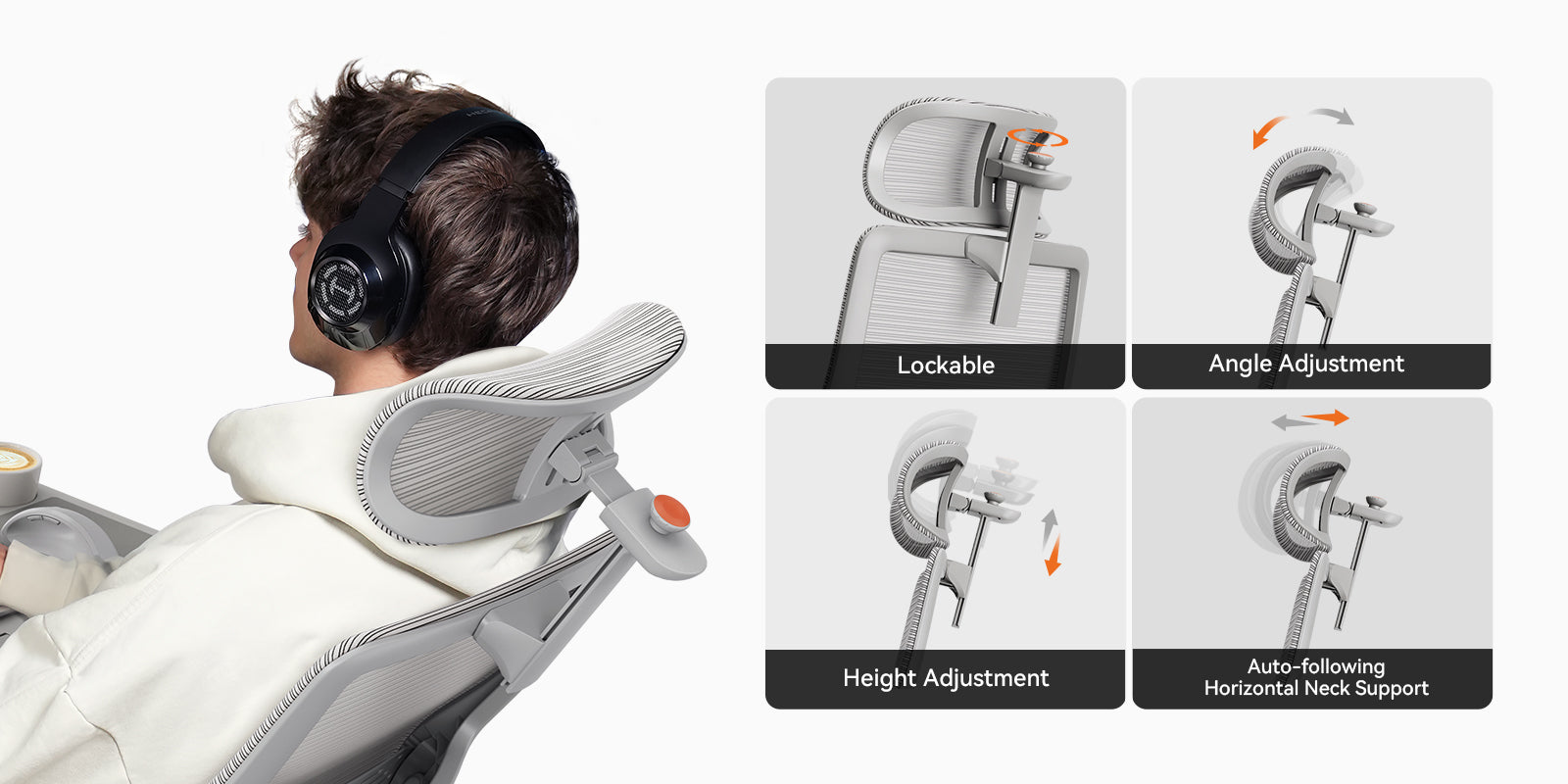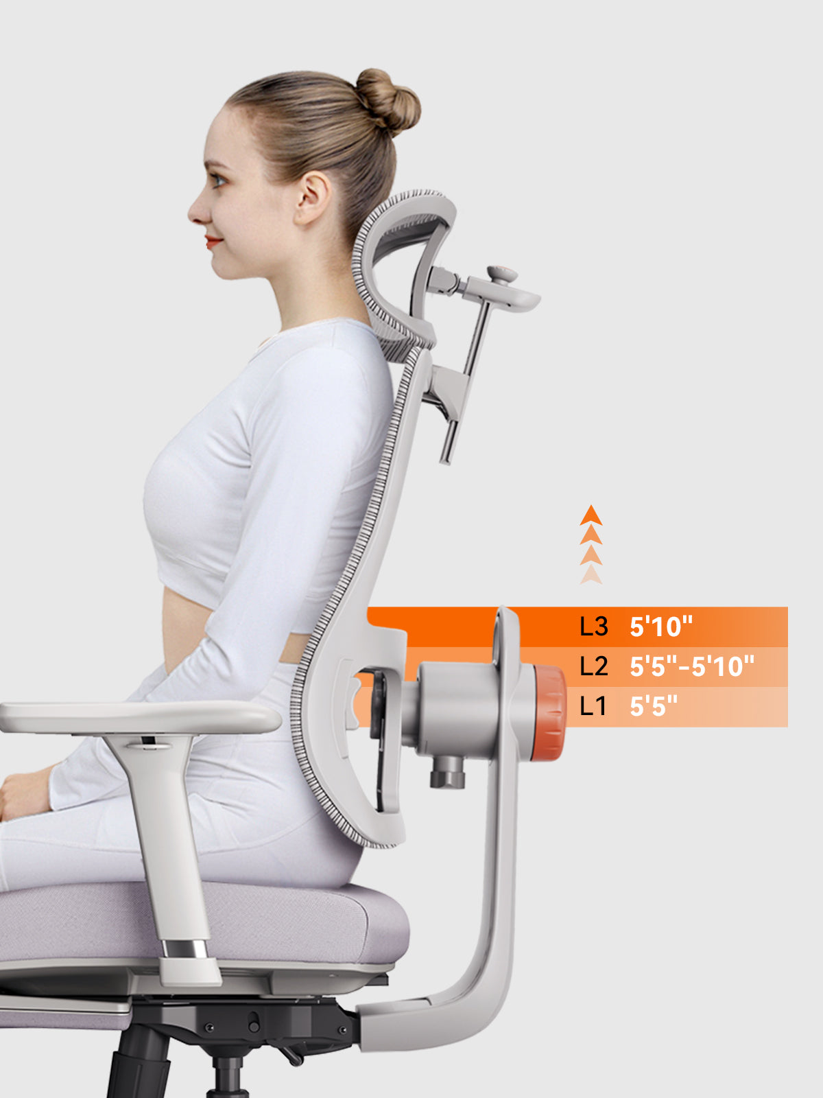 An office chair with neck and back support actively corrects posture imbalances. Ours 5D headrest to adjust headrest height/tilt in real-time, preventing the "tech neck" slump.