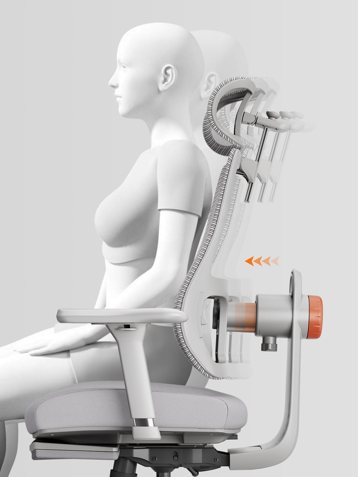 The auto-following backrest design effectively supports your back whether you lean forward or recline, relieving spinal pressure from prolonged sitting.