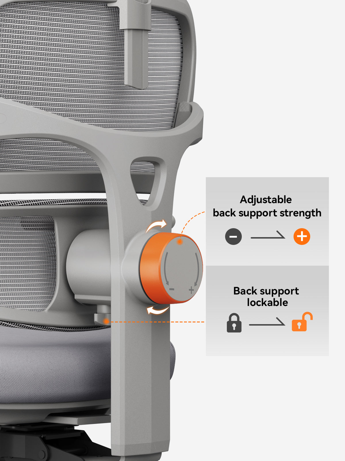 The lumbar support strength can be adjusted individually to suit the preferences of users of different weights. With simple adjustments, people of all weights can obtain optimal support strength and ensure effective lumbar support in various postures.