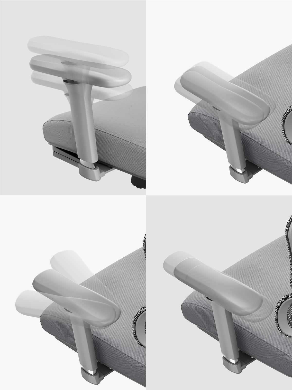 The Newtral NT002 adjustable laptop table for chair features 4D armrests adjustable in forward-backward, up-down, left-right, and rotation directions. This keeps your arms in a natural position during work, reduces shoulder and neck strain, and provides comprehensive support for your elbows.