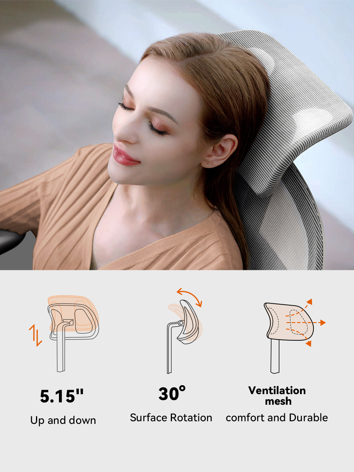 The auto-following lumbar support design provides reliable lower back support. The backrest and lumbar support contour to your spine's natural curves, ensuring your entire spine receives dependable support. This helps prevent and alleviate a range of health issues caused by prolonged sitting at work.