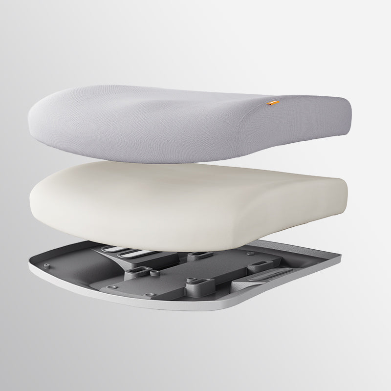 The core technology of Newtral NT002 grey chair. The unique lumbar cushionauto-follows your lumbar movement. Leaning forward to work, sitting upright, or reclining – it continuously follows your lower back with precise support, significantly reducing lumbar strain.