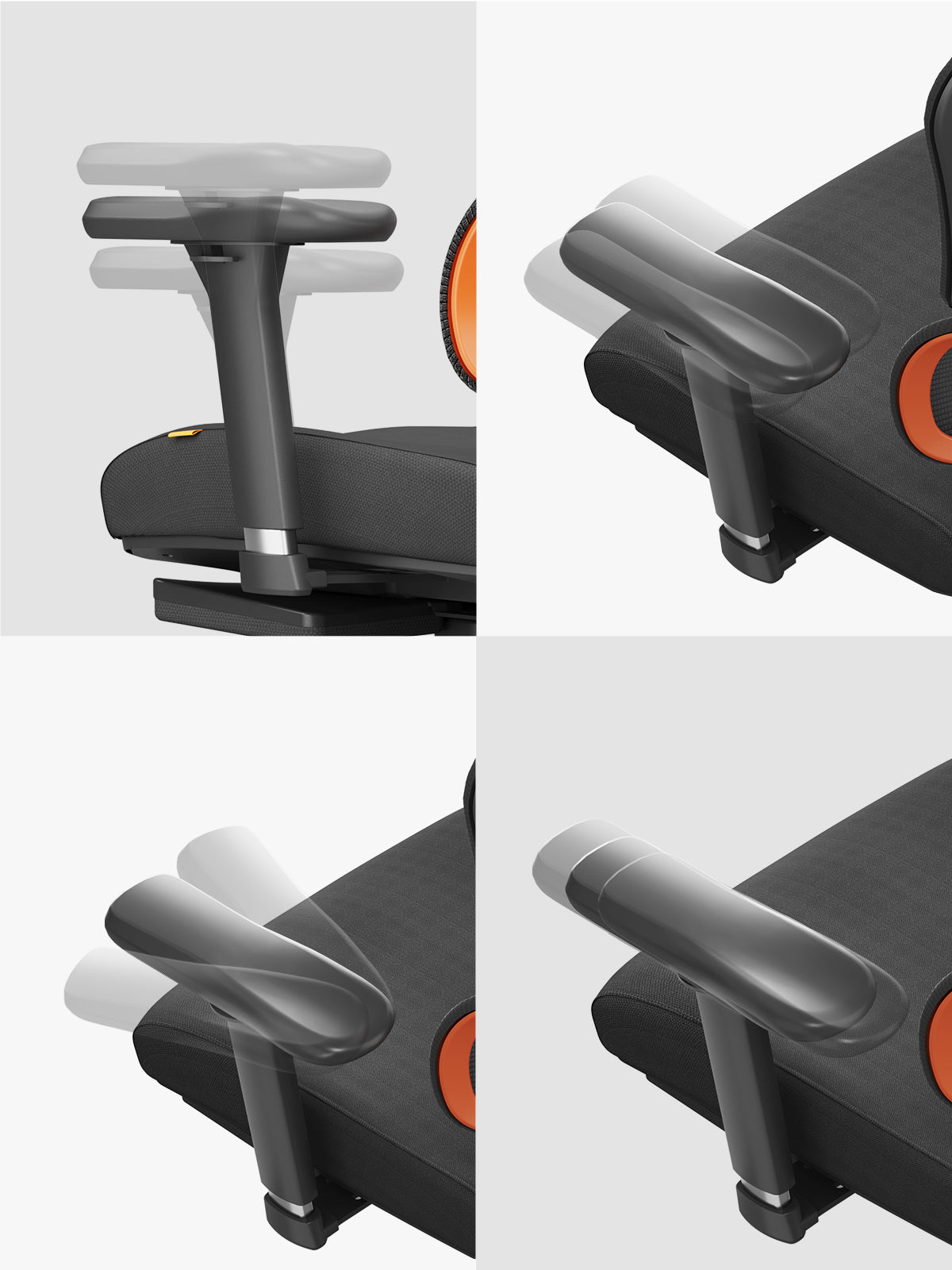 The Newtral NT002 adjustable laptop table for chair features 4D armrests adjustable in forward-backward, up-down, left-right, and rotation directions. This keeps your arms in a natural position during work, reduces shoulder and neck strain, and provides comprehensive support for your elbows.