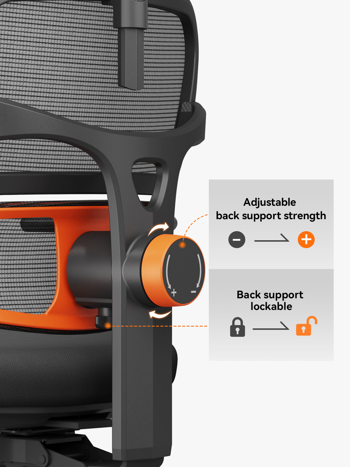 Contact usDynamic lumbar support, globally pioneering, dynamically follows the waist, and can be locked in any position forward and backward (adjustable by 5cm), matching each individual's different body posture and sitting position. It will support your lumbar no matter you're leaning forward, sitting upright, or reclining. Ensuring users maintain correct posture and comfort during long periods of sitting.