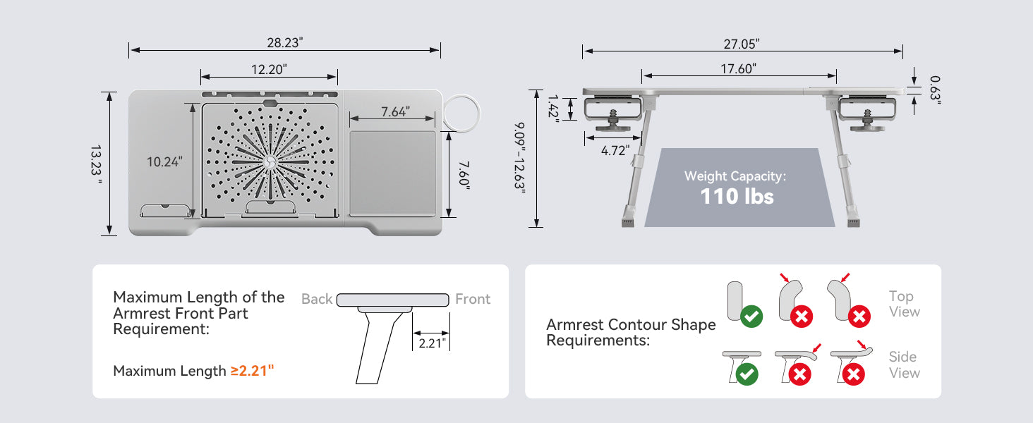 It is compatible with office chairs with various T-armers by adjusting the armrest accessories to match different armrest thicknesses.
