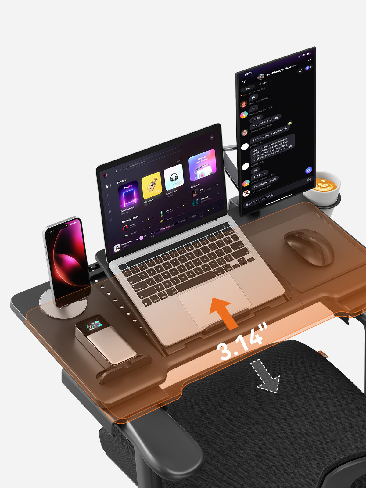 When charging your laptop or other devices.easily store the cables in the dedicated slot.This ensures a tidy workspace, keeping cablesorganized and preventing clutter fromaffecting your usage.